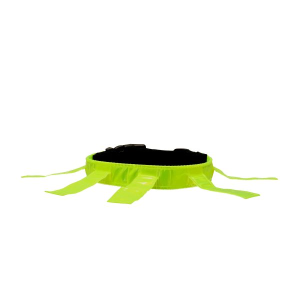 Heijastava kaulapanta metsästykseen ja pimeisiin iltoihin. Varustettu säädettävällä joustavalla osalla, jotta panta on helppo pukea. Jousto-osa vähentää riskiä jäädä kiinni kaulapannasta. Levyt lisäävät näkyvyyttä, loistava pitkäkarvaisille koirille. Pannassa ei ole kiinnitystä taluttimelle, tarkoitettu käytettäväksi normaalin pannan tai valjaiden lisäksi.