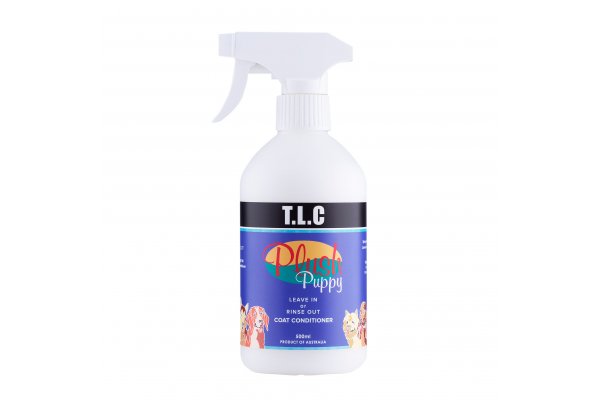 Innovatiivinen turkkiin suihkutettava hoitoaine, jonka voi joko jättää turkkiin tai huuhdella pois.