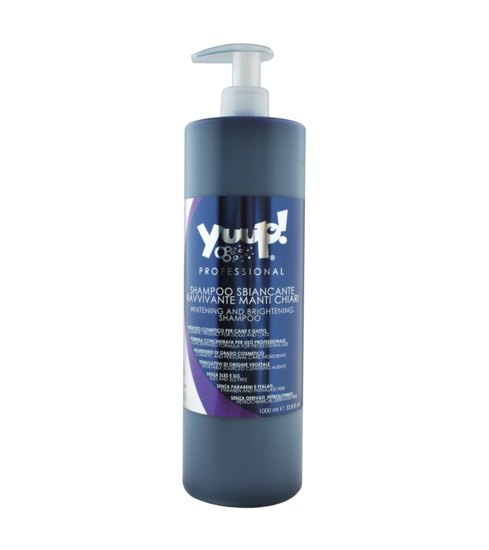 Yuup Professional sarjan laadukas kirkastava shampoo suunniteltu erityisesti ehkäisemään vaaleiden turkkien kellastumista. Shampoo on valmistettu ilman valkaisuaineita tai vetyperoksidia.