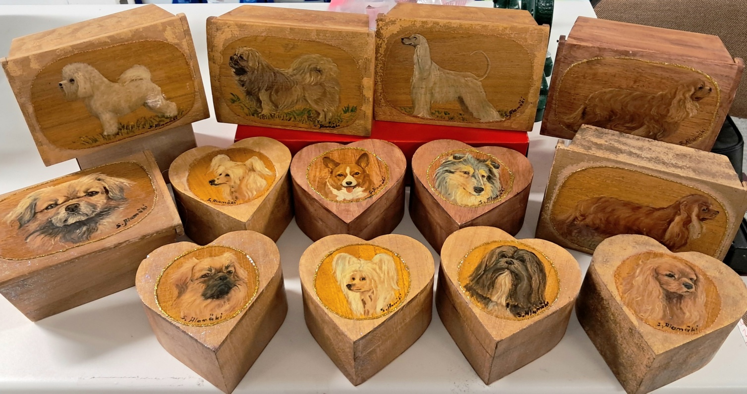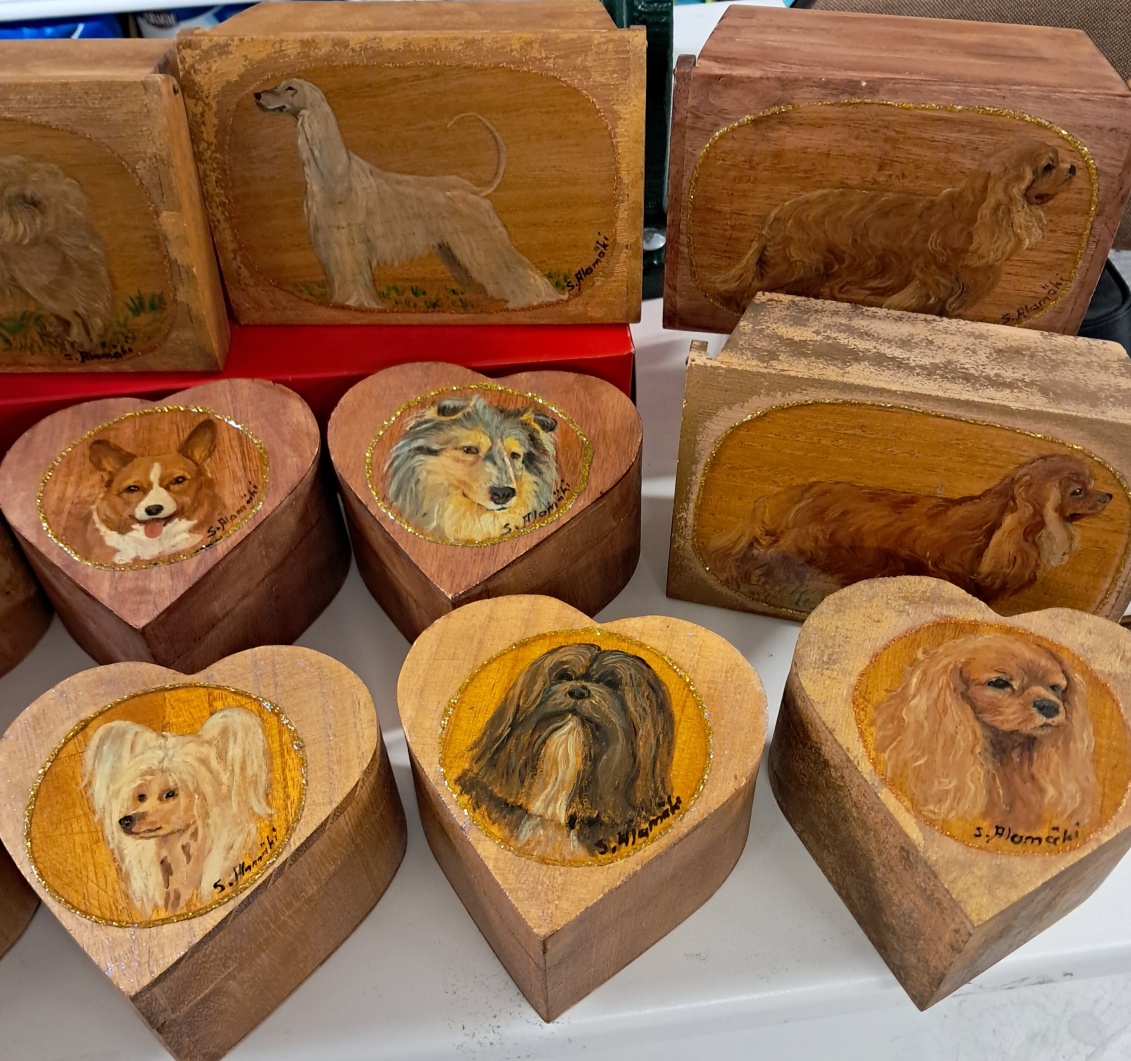 Suomalaisen taiteilijan Alamäen Sirkan maalaamat uniikit puurasiat rotu-kuvilla. Loppuerä.
