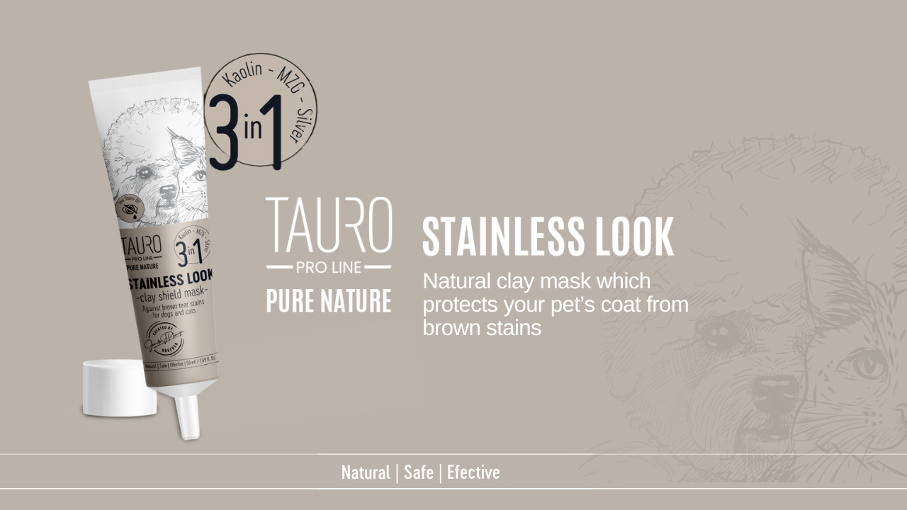 Tauro Pro Line Pure Nature Stainless Look Mask on valkoisille koirille ja kissoille kehitetty savimaski, joka sisältää seuraavia ainesosia: