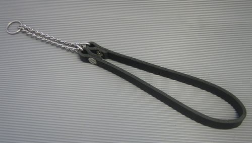 Litteä puolikuristava nahkapanta paksulla ketjulla