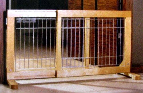 Leveys 63-108cm, korkeus 50cm. Soveltuu käytettäväksi pienten koirien kanssa. Helppo itse astua yli. Ei tarvitse kiinnittää seinään, seisoo omilla jaloillaan.