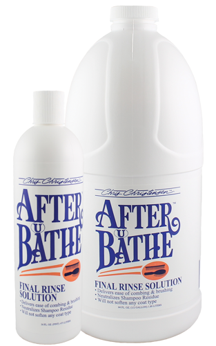 Chris Christensen After Bath hoitoaine helpottaa turkin käsiteltävyyttä ja nopeuttaa sen kuivumista. Soveltuu erityisesti turkeille, joista hoitoaineet tekevät liian velton. Lisää turkin kosteutta ja kimmoisuutta, eikä jätä turkin pintaan öljymäistä tai vahamaista tuntua. Ei myöskään pehmennä turkkia. Kaksi pakkauskokoa.